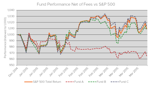 The active share1 was calculated as of January 1, 2015, and during Q1 2015 the funds performed as follows: