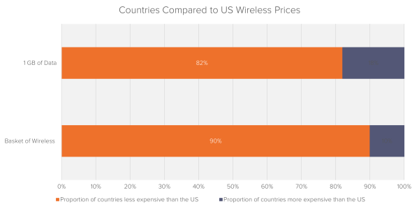 - The United States (“US”) has some of the most expensive wireless plans in the developed world: the average price for 1 gigabyte (“GB”) of data was twice the OECD average in 2018.