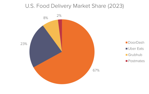 - DoorDash has achieved a dominant position in the U.S. meal delivery market, holding a 67% market share as of 2023.