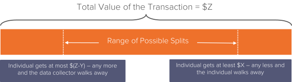 From these parameters, we estimate that the amount that the data collector might have paid the individual for her data, had she been afforded the opportunity to bargain for it, falls somewhere between $X and $(Z-Y).