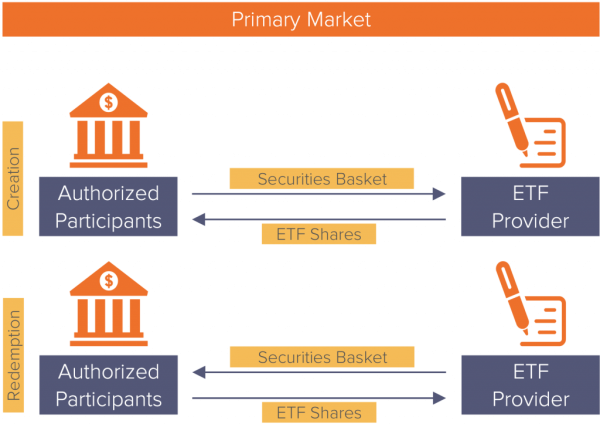 A unique feature of ETFs is the creation/redemption mechanism which keeps secondary market prices in line with the Net Asset Value (NAV) of its underlying securities. The key players in this process are Authorized Participants (APs) – large financial institutions which transact directly with ETF managers in the primary market, and trade with investors in the secondary market.