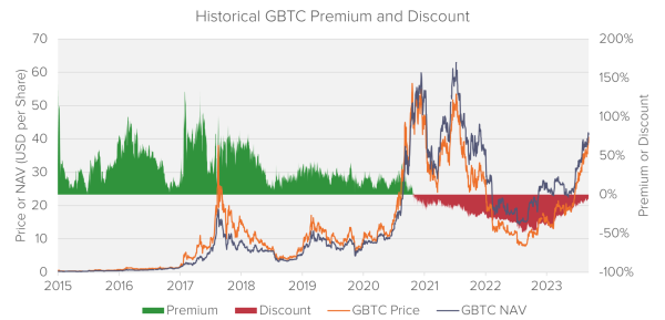 Figure 2 GBTC Premium and Discount; Source: Bloomberg, Fideres