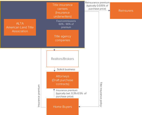 The transaction process may vary from state to state. The chart below provides an overview of the industry structure, its main players, and financial flows: