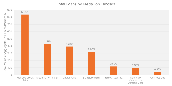 The era of liberal lending in the medallion market hinged on the idea that the value of medallions would continue to rise. Following the 2014 market crash, the majority of these loans became unsustainable. The total book value of medallion loans in 2017 was approximately $4.9 billion.