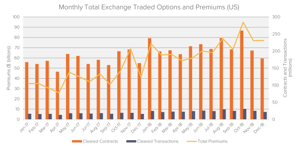 Note that these figures are based on an average premium of $432 per contract and an average of 8.3 contracts per transaction, drawn from the December 2018 Options Clearing Corporation report.