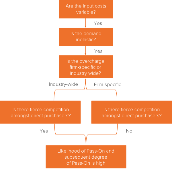- Strength and intensity of competition in downstream markets: the degree of passing-on depends on the level of competition between direct purchasers. For example, if there is fierce competition amongst direct purchasers, they would be less likely to increase their prices and pass-on overcharge, to remain competitive and maintain their market shares.