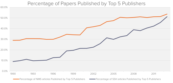 - The five largest journal publishing firms account for as much as 70% of the published papers in certain subject disciplines.