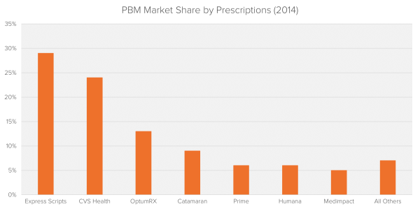 While not a direct link in the physical supply chain, PBMs play an integral part of most consumer purchases. As is the case with manufacturers, wholesalers and pharmacies, the market for PBMs is highly concentrated. Following years of M&A activity, the top five PBMs account for more than 80% of all prescriptions dispensed in the U.S.